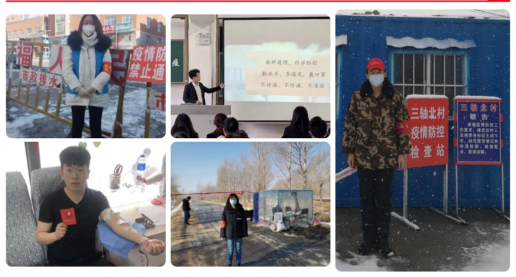 这五位同学在疫情期间响应共青团号召,积极参与线上及线下战“疫”工作,在不同的岗位上积极担当、主动作为,与国家携手并进,成为了抗“疫”部队中不可或缺的一份青年力量,是青年大学生热血青春、服务社会的统一体现。