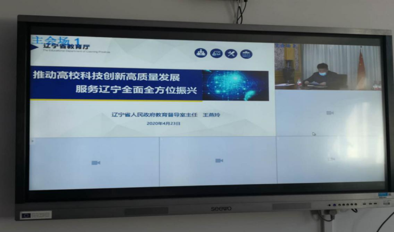 4月23日上午9:00—10:00,2020年全省高校科技工作(视频)会议在沈阳召开。我校在沈阳校区视频会议室设分会场。学校领导谷春祥、王长松、部分在沈教学单位负责人及科技处处长王树海参加了会议。